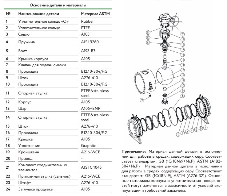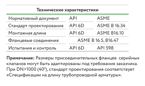 Примечание: размеры присоединительных фланцев могут быть адаптированы под требования заказчика. Для DN > 1000 (40") проектирование выполняется в соответствии со «Спецификацией на длину трубопроводной арматуры».